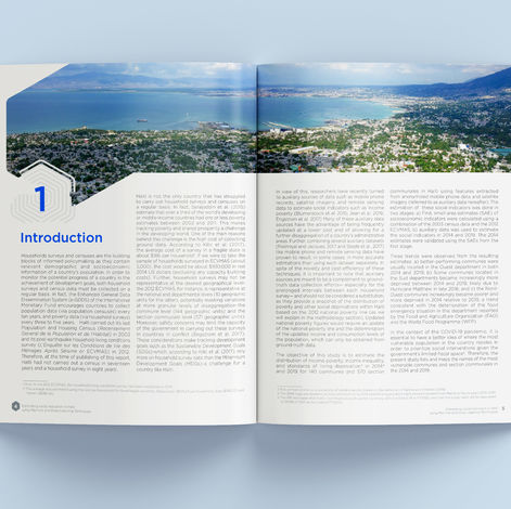 Esta es una publicación digital, en Inglés y francés, cuyo desarrollo implicó cuidado y atención al manejar contenido con fórmulas estadísticas, la búsqueda de elementos gráficos que transmitieran lo innovador de la metodología utilizada en el estudio, asimismo la integración de imágenes sobre la realidad social de Haití.